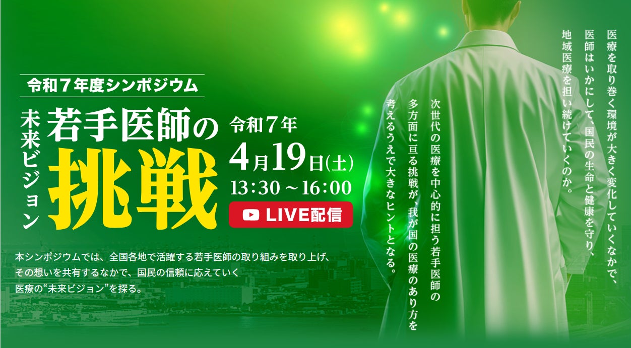 日本医師会では、次世代の医療を中心的に担っていく若手医師の取り組みを通して、国民の信頼に応え続けていく医療の在り方等を考える機会として、本シンポジウムを現地とWEBのハイブリッド形式で開催いたします。