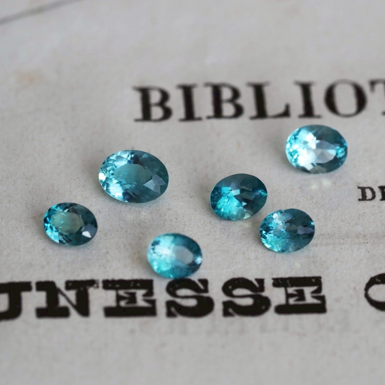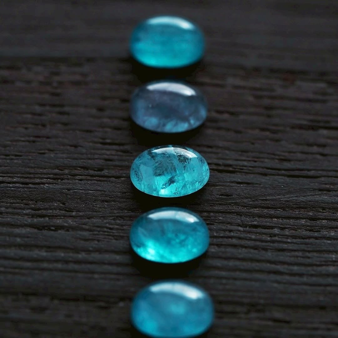 パライバトルマリン:1980年代にブラジルで発見され、ネオンブルーに輝く唯一無二の宝石。銅を含むことで生まれる鮮やかな色彩が魅力です。