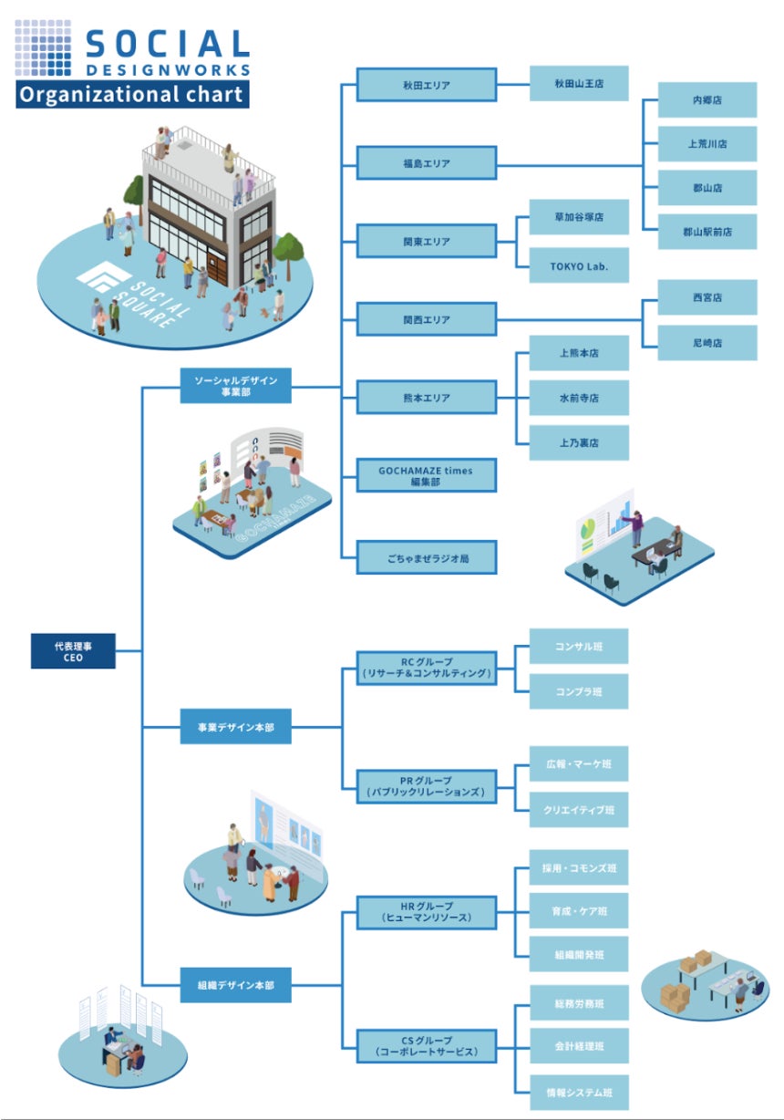 昨年から強化してきた本部組織体制を、本年は更に盤石かつ実効性の高いものにしていきます。テーマは「個の力を組織の力に」。各拠点の取り組みをより全国組織の力にしていく「事業デザイン本部」および組織そのものの体制強化をする「組織デザイン本部」を新設し、法人内外から積極的に新しい人財を迎えて、成長のための組織力を高め地盤作りに注力する予定です。