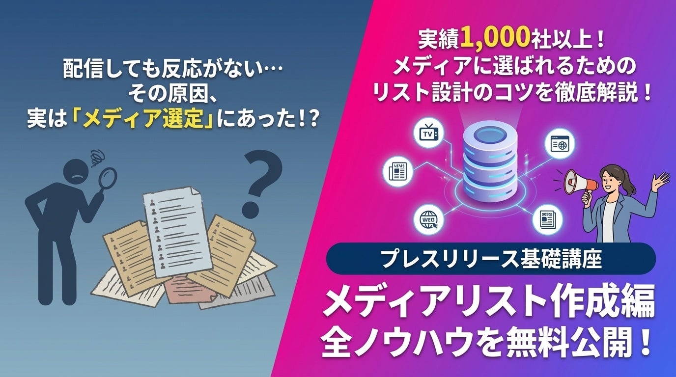 その現状を打破するため、PR支援実績1,000社以上を誇る株式会社PRIZMAは、現場のノウハウを体系化した決定版資料『プレスリリース基礎講座|メディアリスト作成編』を公開しました。