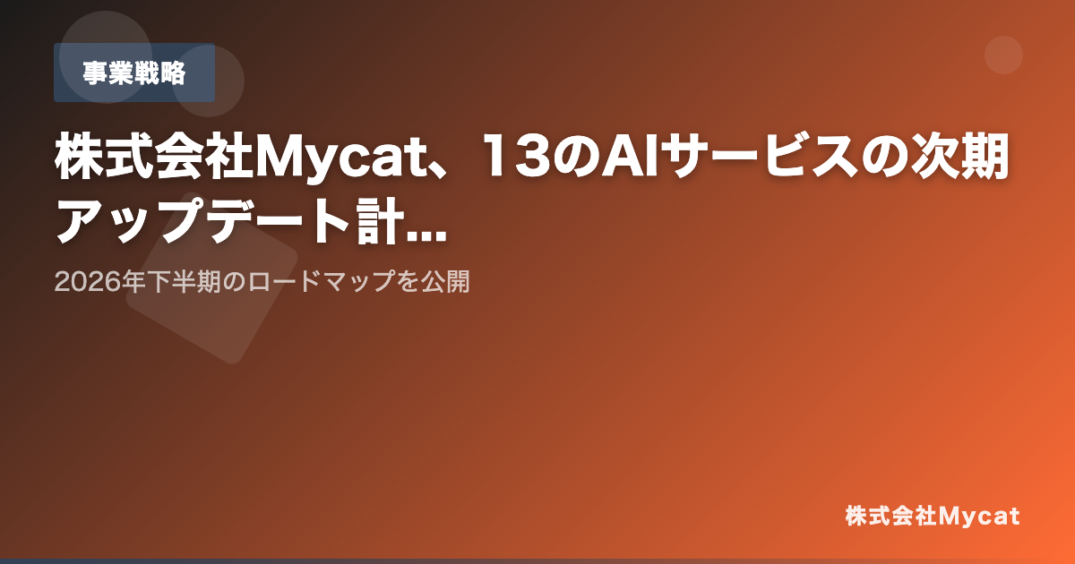 株式会社Mycat(本社:東京都目黒区)は、同社が運営する複数のAIサービスの診断機能を横断的に利用できる「クロスプロダクト診断ツール」を新たに公開しました。