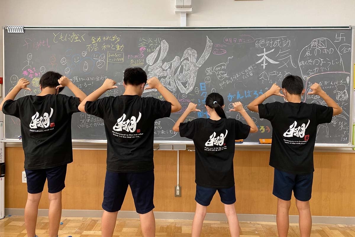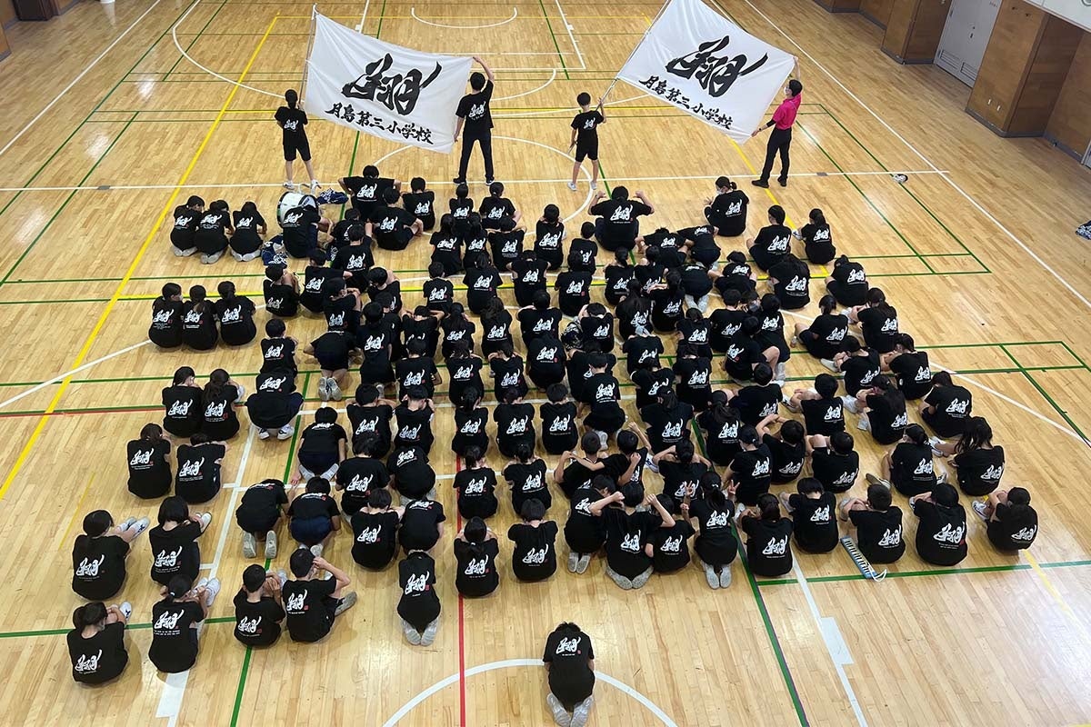 早速、10月に実施された運動会でオリジナルTシャツを着ていただきました。今後は秋の登山でも着用予定です。おそろいの漢字+自分たちのオリジナルデザインでつくった学年Tシャツが、児童たちの最終学年を彩ることを願っています!
