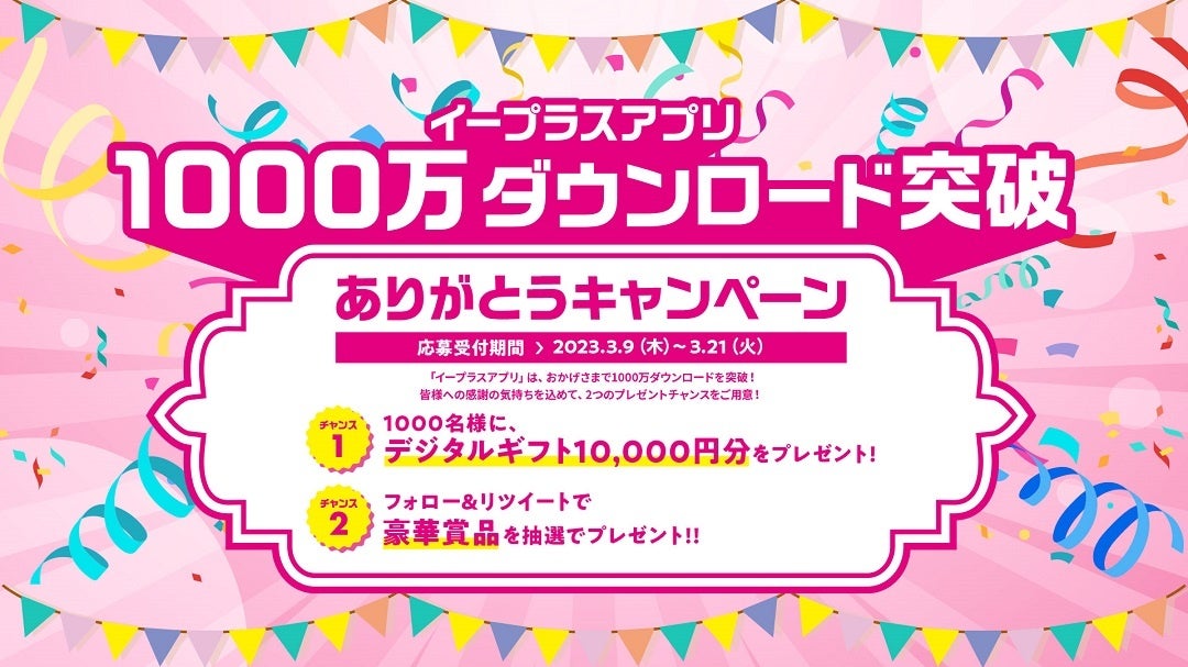 【「イープラスアプリ1000万ダウンロード突破ありがとうキャンペーン」概要 】
