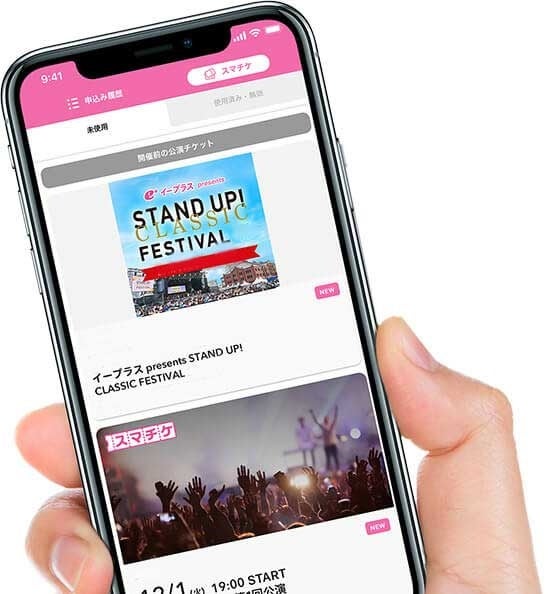 お手元のスマホから「イープラスアプリ」一つで、情報収集からチケット購入、入場までのシームレスかつスムーズなエンタメ体験が可能です。