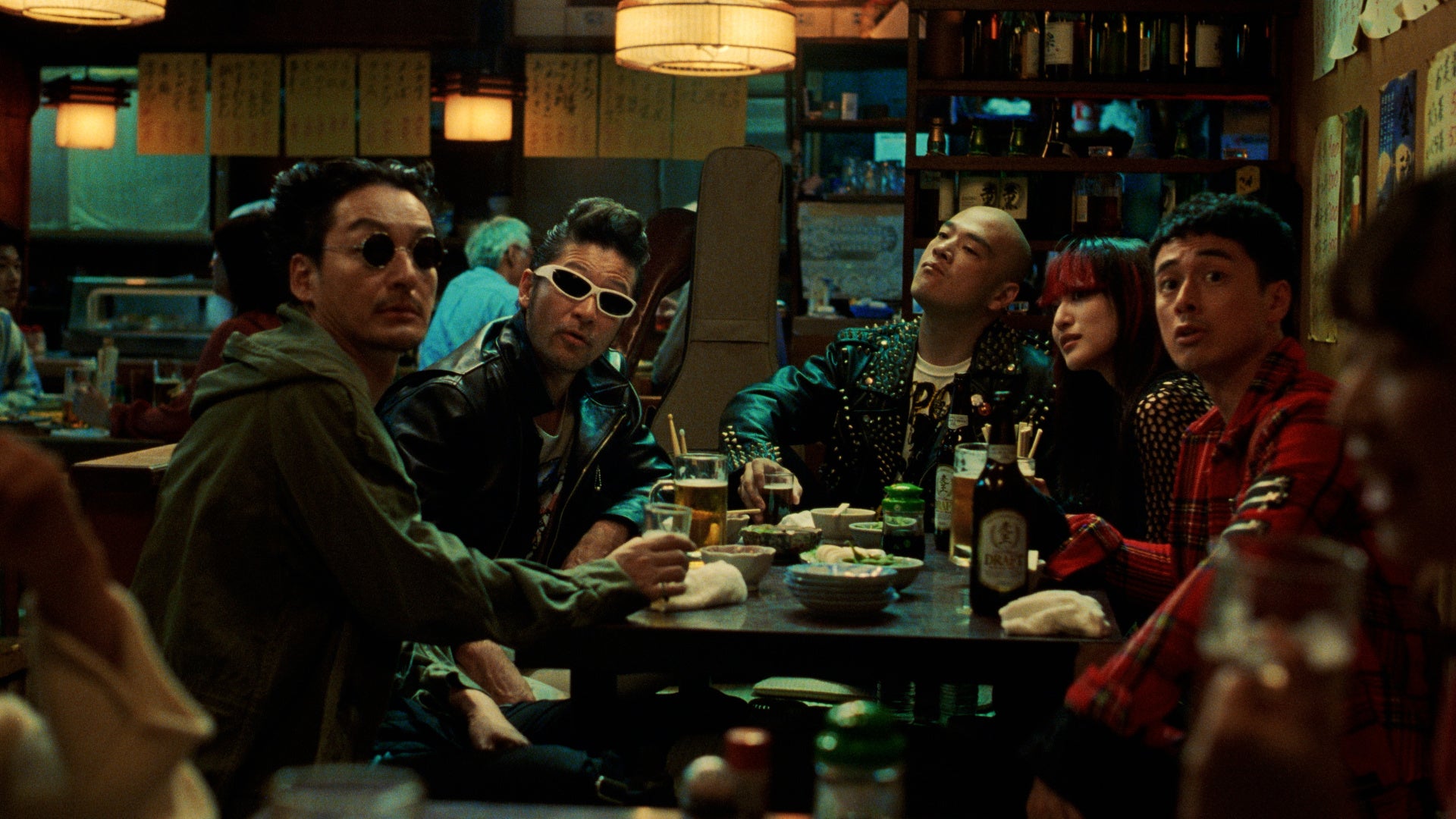 浅野さんはロックバンドをイメージした革ジャンで登場しました。カメラが回っていない時でもバンドメンバー役の共演者と談笑し、終始笑顔の絶えない撮影でした。居酒屋での打ち上げシーンということで、浅野さんはいい飲みっぷりを披露し、共演者に話しかけて場を盛り上げている様子でした。撮影は8月と暑い中でしたが、「暑いね」と共演者に声をかけ、気遣う様子も見られました。