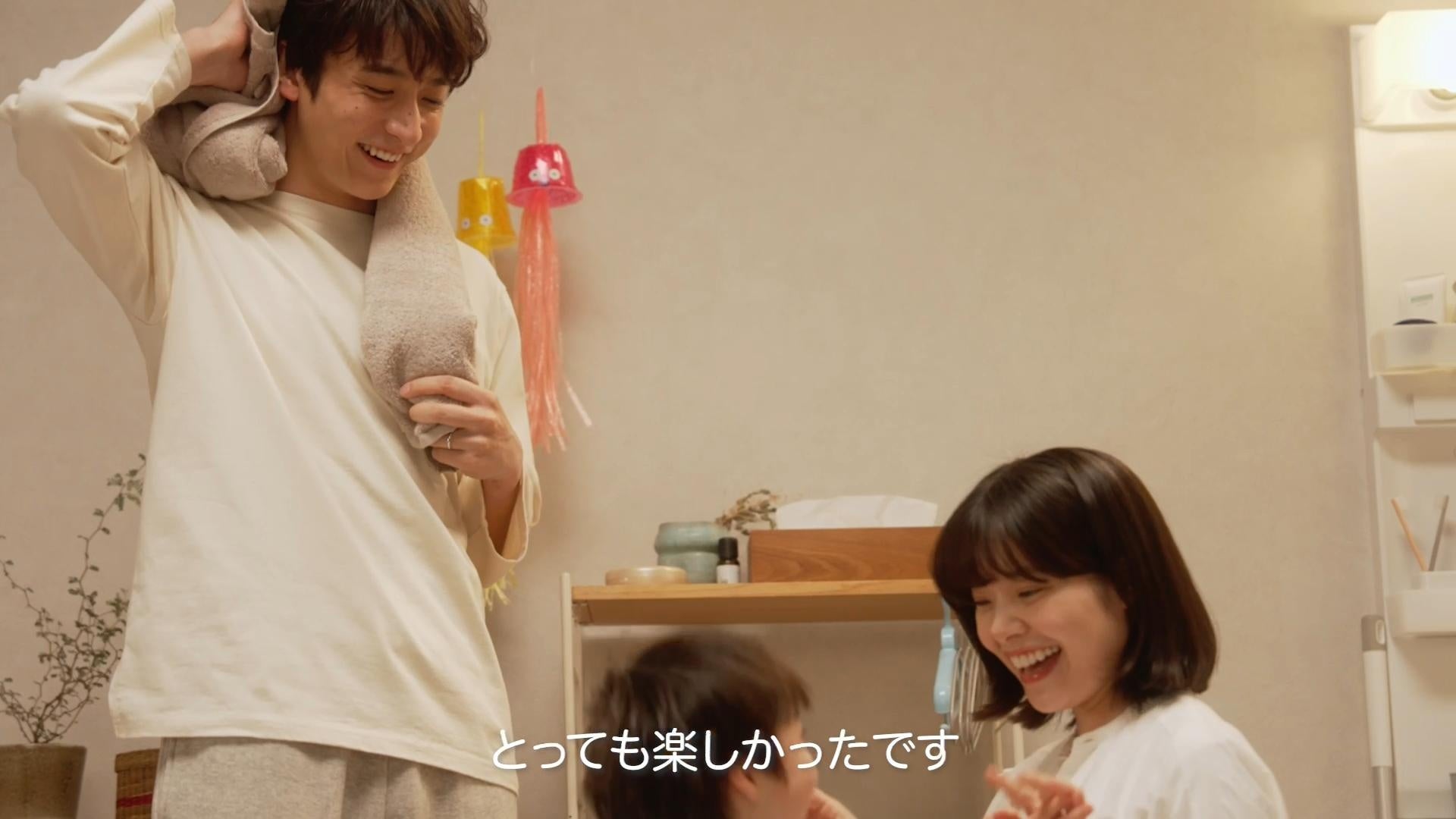 小関さん)そして僕達演じるトシとアキの間に子どもができました。今回のCMは、僕が息子と一緒にお風呂に入っているシーンが描かれています。