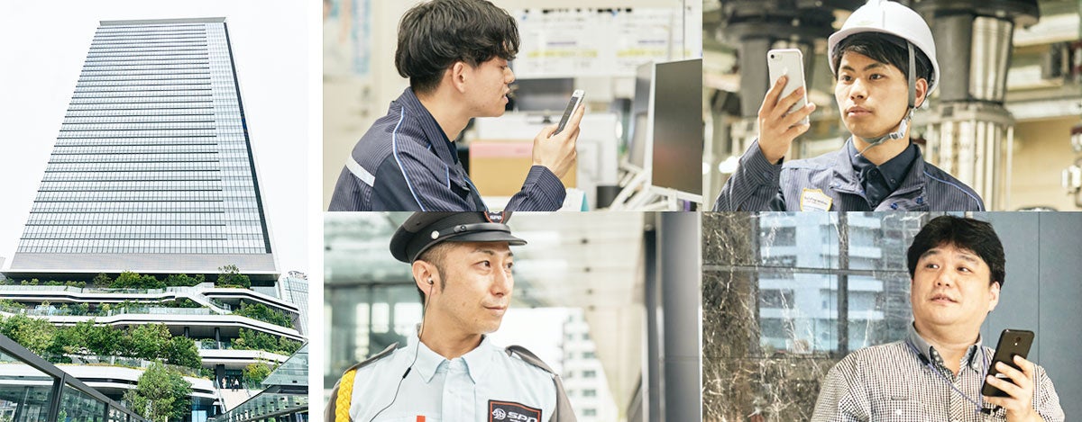 東京ポートシティ竹芝の設備管理では連携する警備会社、清掃会社へ Buddycom を貸与し、他業種間でも効率的でスムーズな情報連携を可能にしています。 会社や部署が異なっていても、同一グループで利用可能である必要があり、緊急時や有事の際には離れたスタッフ間で電話と違いタイムラグ無くコミュニケーションを取れることが導入ポイントの一つとなっています。