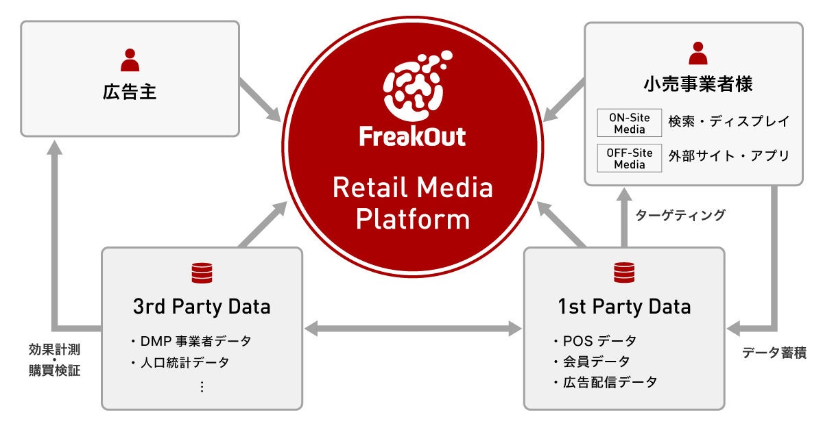 今後は「FreakOut Retail Media Platform」と称して、小売事業者様向けにこれまでのノウハウを活かした広告枠の開発や購買履歴をはじめとしたデータの利活用といった新たなソリューションを提供していきます。