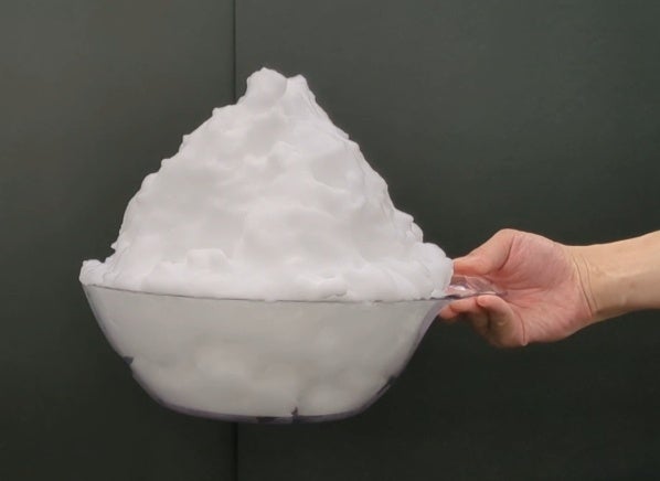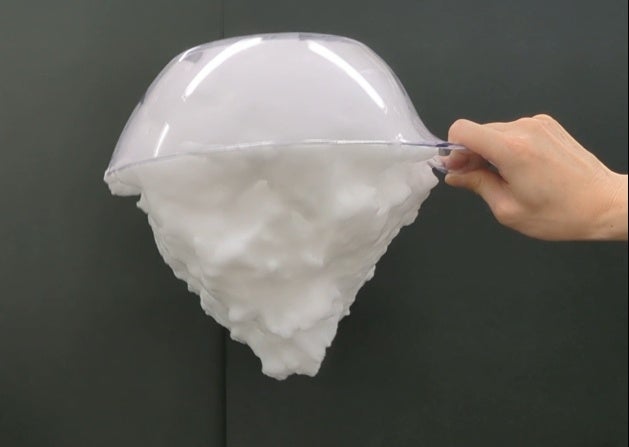 ボディウォッシュ2プッシュ分をバスリリーを使用して泡立て後、容器を逆さにして泡の密着感を見てみると・・・