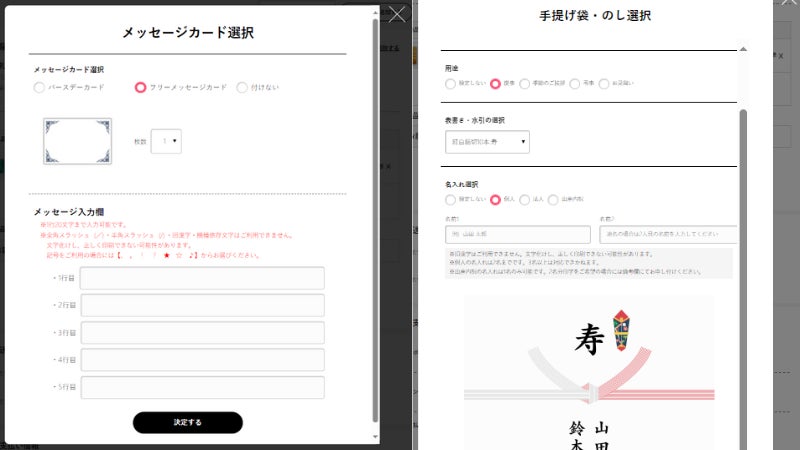 また、メッセージカードやのし選択の際にイメージ画像が表示されることで、購入画面上で届くもののイメージを確認することも可能となりました。