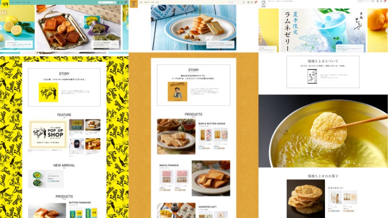 あわせて、それぞれのブランドサイトのデザインやUI/UXに統一感がないという課題にもアプローチをし、ヘッダーのカラーやサイトの背景で世界観やブランドの色を守りつつも、シュクレイ全体としてレイアウトに統一感を持たせました。