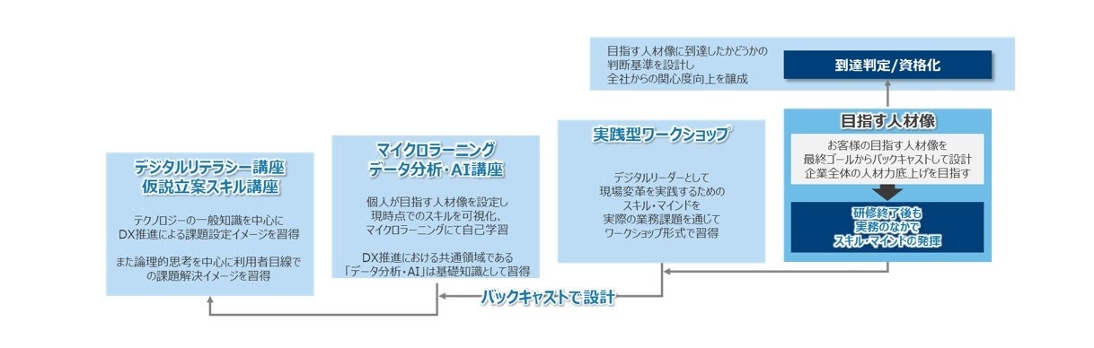 当社は2020年策定の中期経営計画に則り、かねてよりDX人材の育成を実践してきました。このなかで培ったノウハウを活かし、サービスとしての提供開始に至っています。