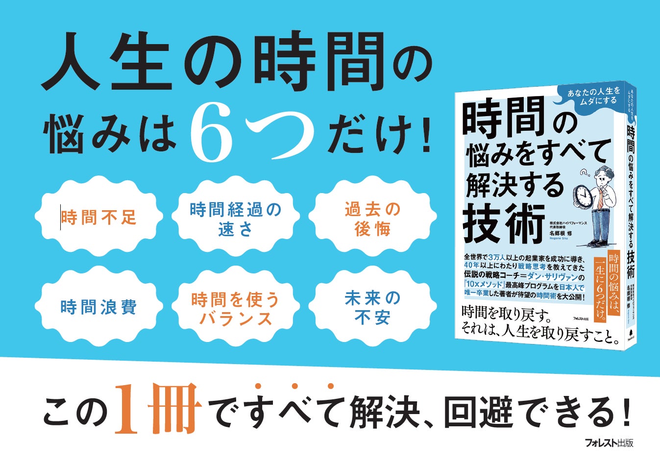 フォレスト出版株式会社(所在地:東京都新宿区、代表取締役:太田 宏)は、『あなたの人生をムダにする 時間の悩みをすべて解決する技術』(名郷根 修・著)を2025年6月21日(土)より順次発売します。本書は、現代人が抱える「時間の悩み」と真正面から向き合い、10年にわたる実践と試行錯誤から生まれた、“人生を根本から変える時間戦略”の一冊です。