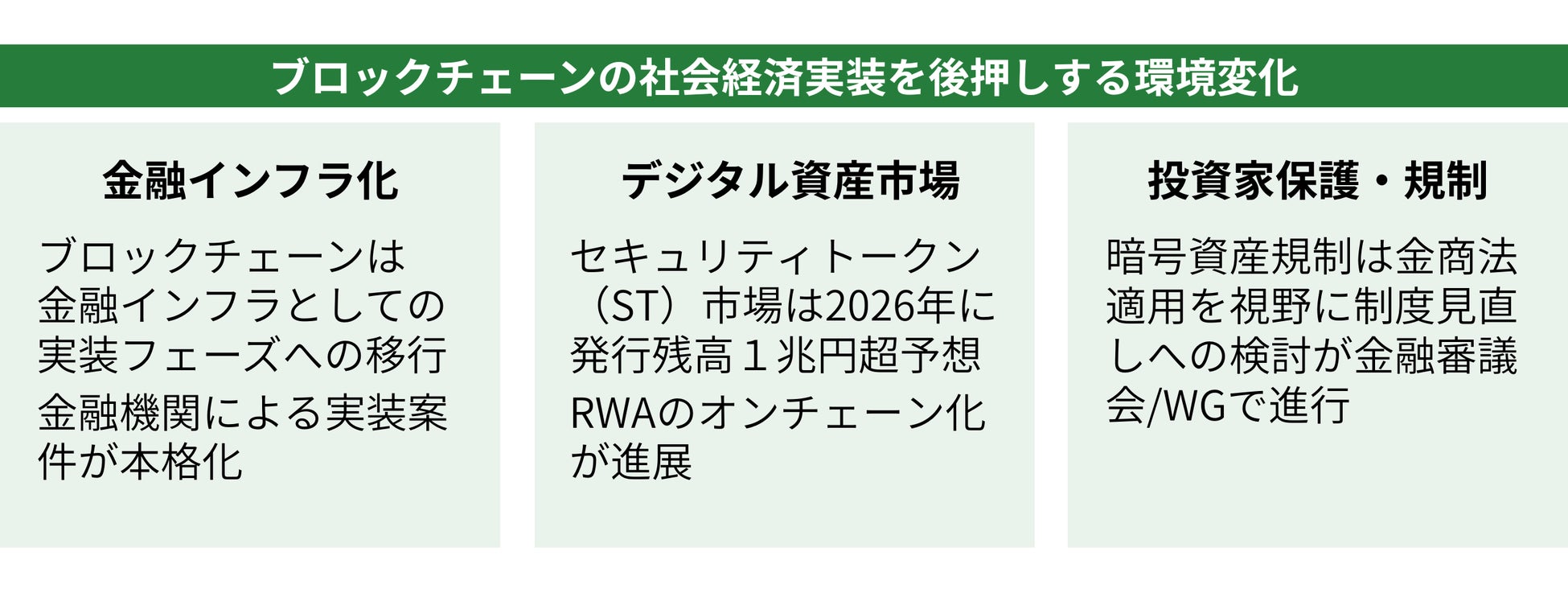 また、暗号資産および関連技術を巡る制度面においても、位置付けや規制の在り方について関係当局による検討が進められており、事業環境は大きく変化しています。