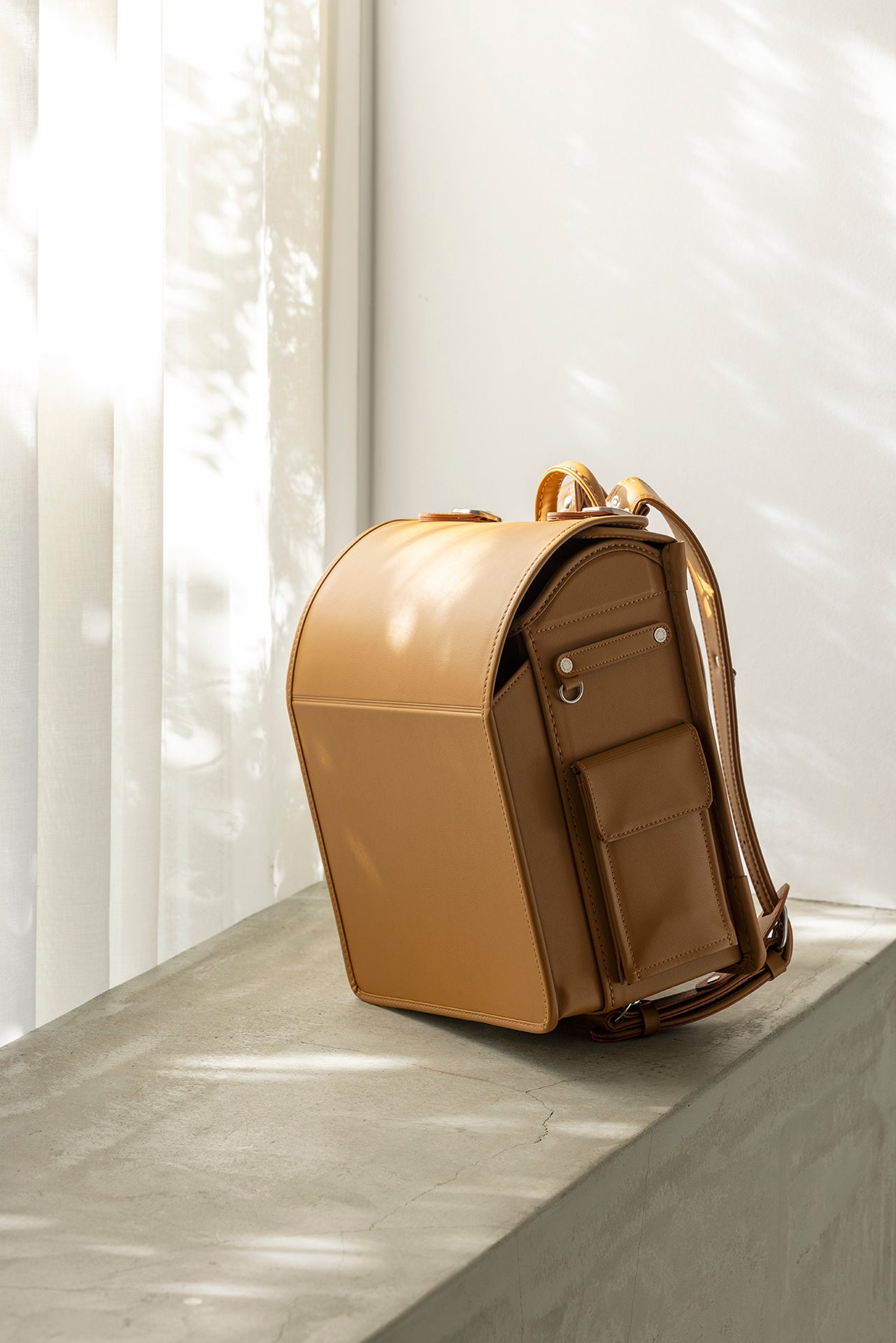 〈ARTISAN〉は、「職人」という意味の名の通り、+CELの技術を結集したモデル。オーセンティックなランドセルの形状をしていますが、専用のボトルケースをサイドに配するなど新鮮な印象に仕上げました。人工皮革でありながら切り端を磨き上げるコバ処理を施したり、フロントポケットをマチ付きの立体的な形状にしたり、徹底した心配りがされています。その佇まいに合わせて、落ちついた4色の展開です。