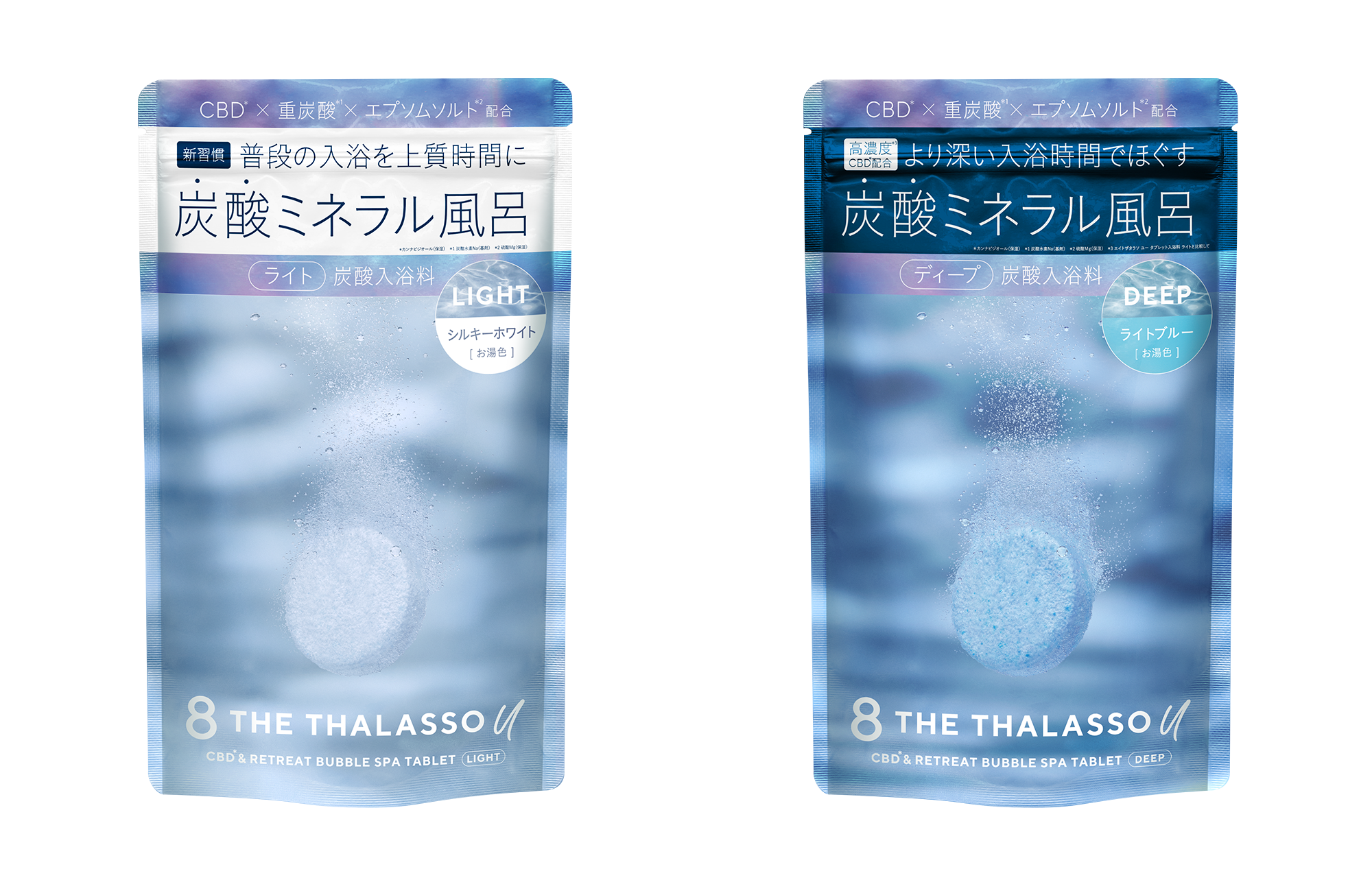 自宅で簡単に“重炭酸スパ”が楽しめる「炭酸入浴料」が登場!CBD・エプソムソルト配合。コンディションや気分に合わせて選べる2種類をエイトザタラソ ユーより新発売