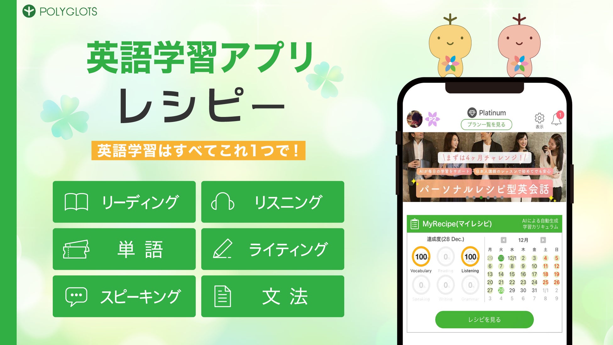 『春の英語学習応援キャンペーン開催』2022年3⽉1⽇(火)〜 3月14⽇(月)- 英語学習アプリ レシピー ( ポリグロッツ )