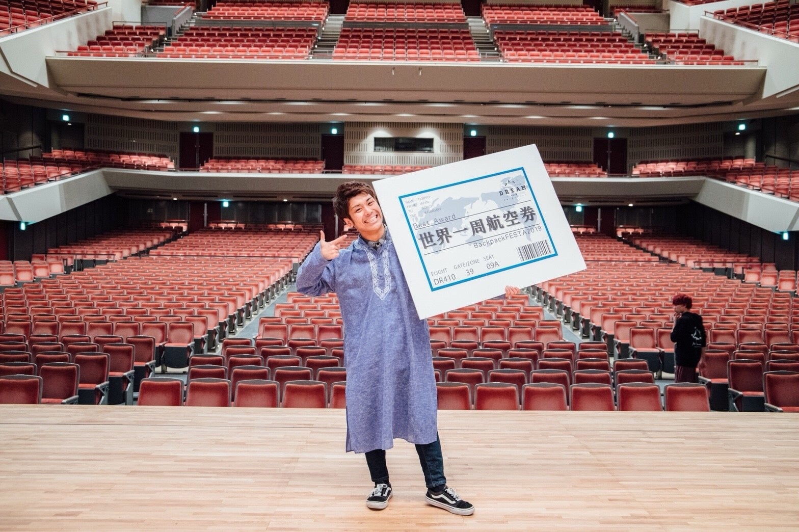 世界一周の夢を叶えるコンテスト「DREAM」は、旅好きの若者が旅への想いを語るコンテストです。セミファイナル・ファイナルは約2,000名の観客がいるイベントで行い、最も聴衆の心を動かした方に最優秀賞として世界一周航空券を贈呈します。