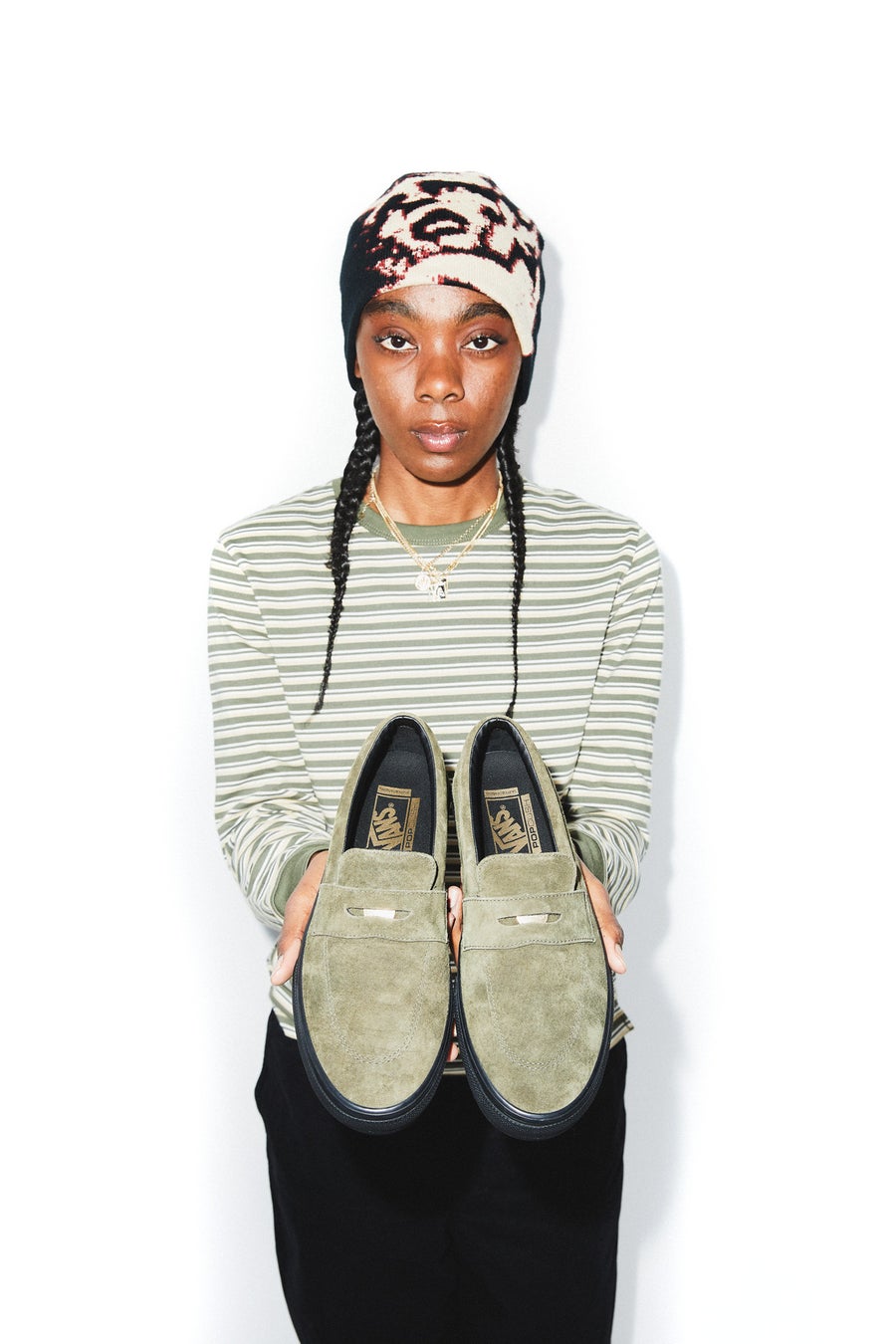 「ZAHBA MID BY BEATRICE DOMOND」に加え、ローファータイプのスケートシューズが発売されます。ZAHBA MID同様のオリーブ色のカラーリングで、シックなシューズに仕上がりました。また、ロングスリーブTシャツ、キャップなどのアパレル/アクセサリーも多く用意され、全身でスタイリングが楽しめるようになっています。