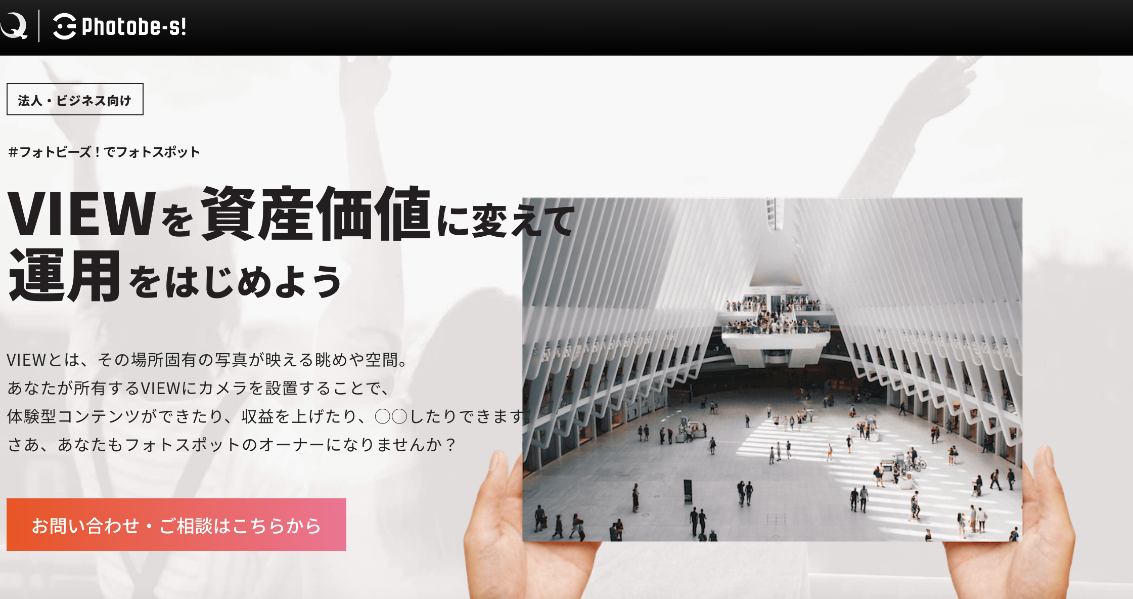 フォトビーズのフォトスポットオーナー向けのページには「VIEWを資産価値に変えて運用をはじめよう」というコピーが書かれています。