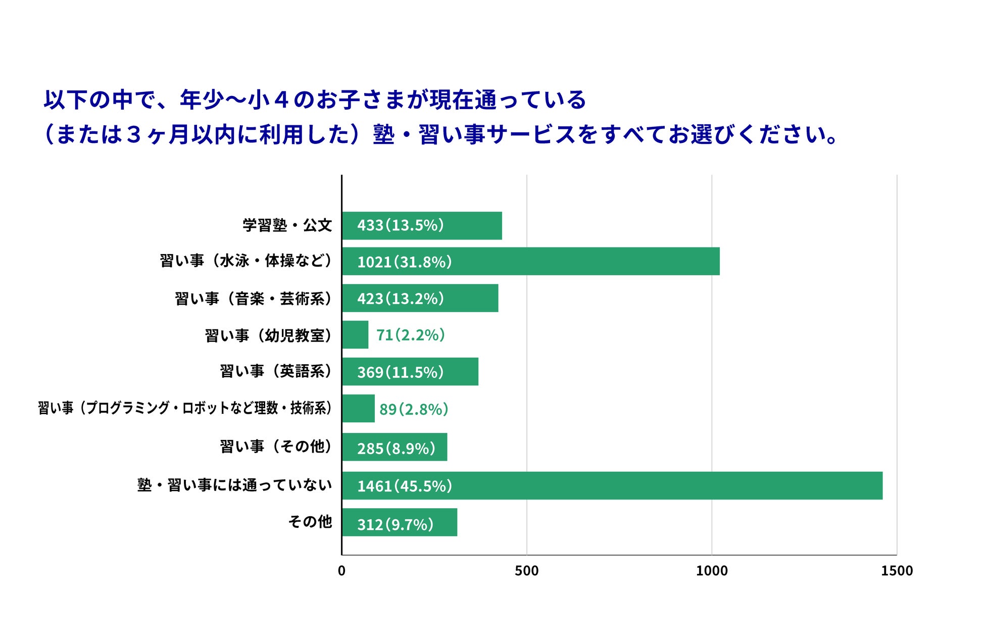 保護者に対し、子どもが現在通っている塾・習い事サービスについて質問したところ、以下の結果が得られました。
