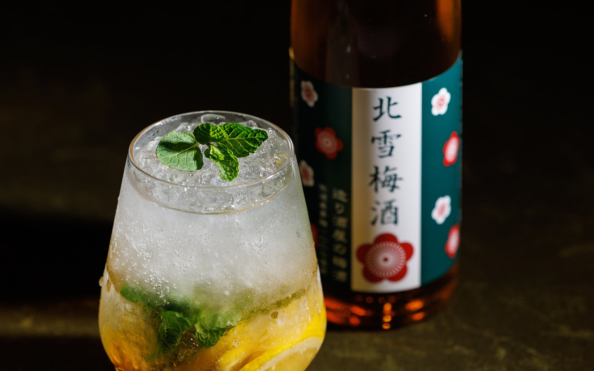 佐渡島で収穫された大粒の青梅だけを使用した“北雪梅酒”で作ったモヒートです。甘さのある梅酒にレモンの酸味をプラスした、爽快感が溢れるカクテルです。