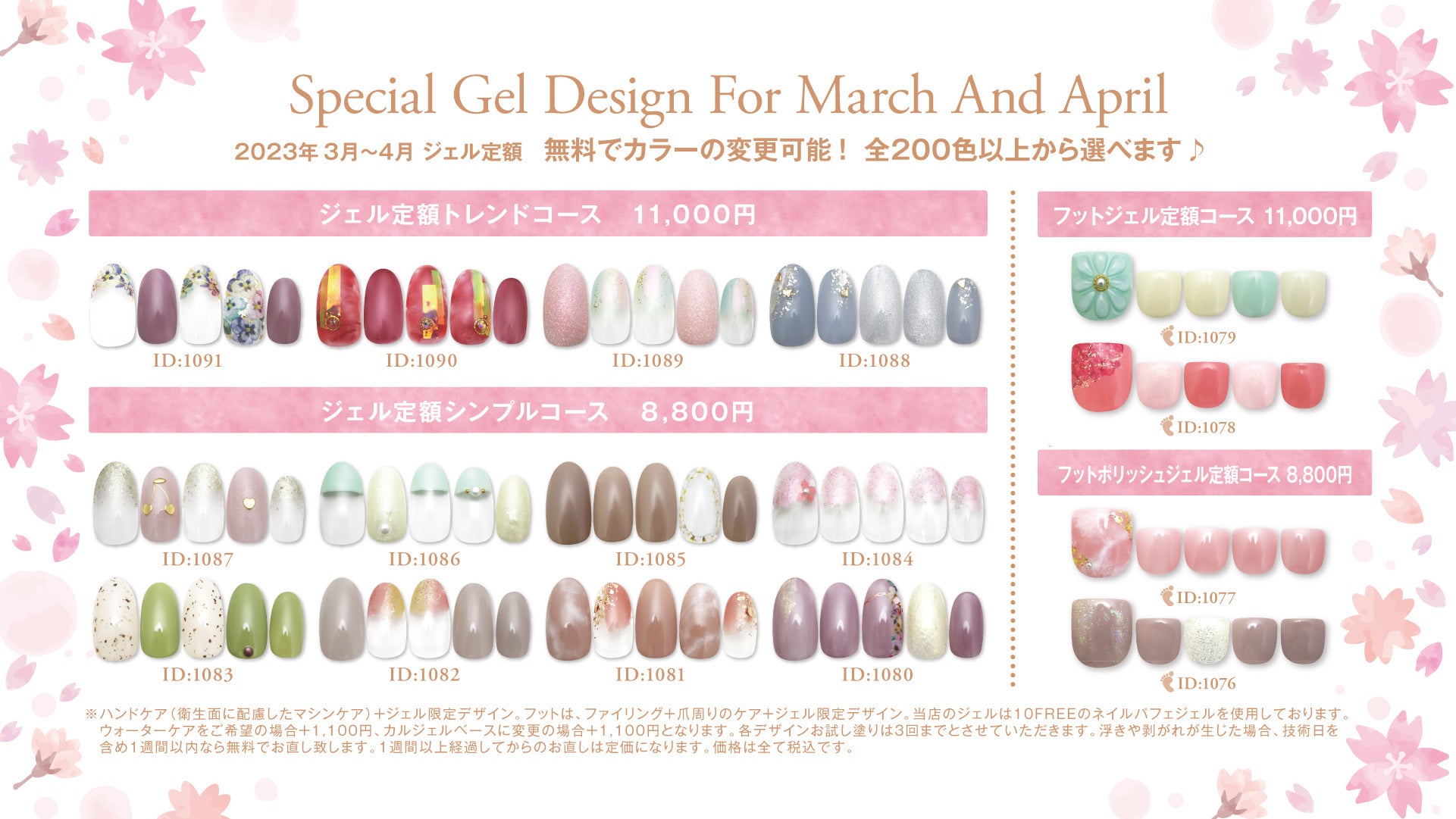 2023年3月4月限定デザイン ジェル定額、2023年春のエイブルアート・カンパニー×ネイルクイック コラボネイルアートのご紹介