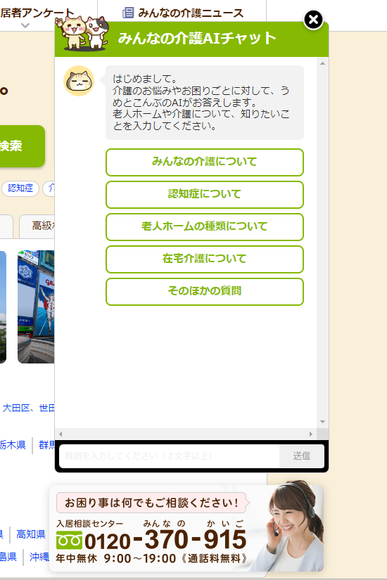 【みんなの介護】新機能!介護の悩みや施設探しのサポートをAIがする「チャットボット」を導入