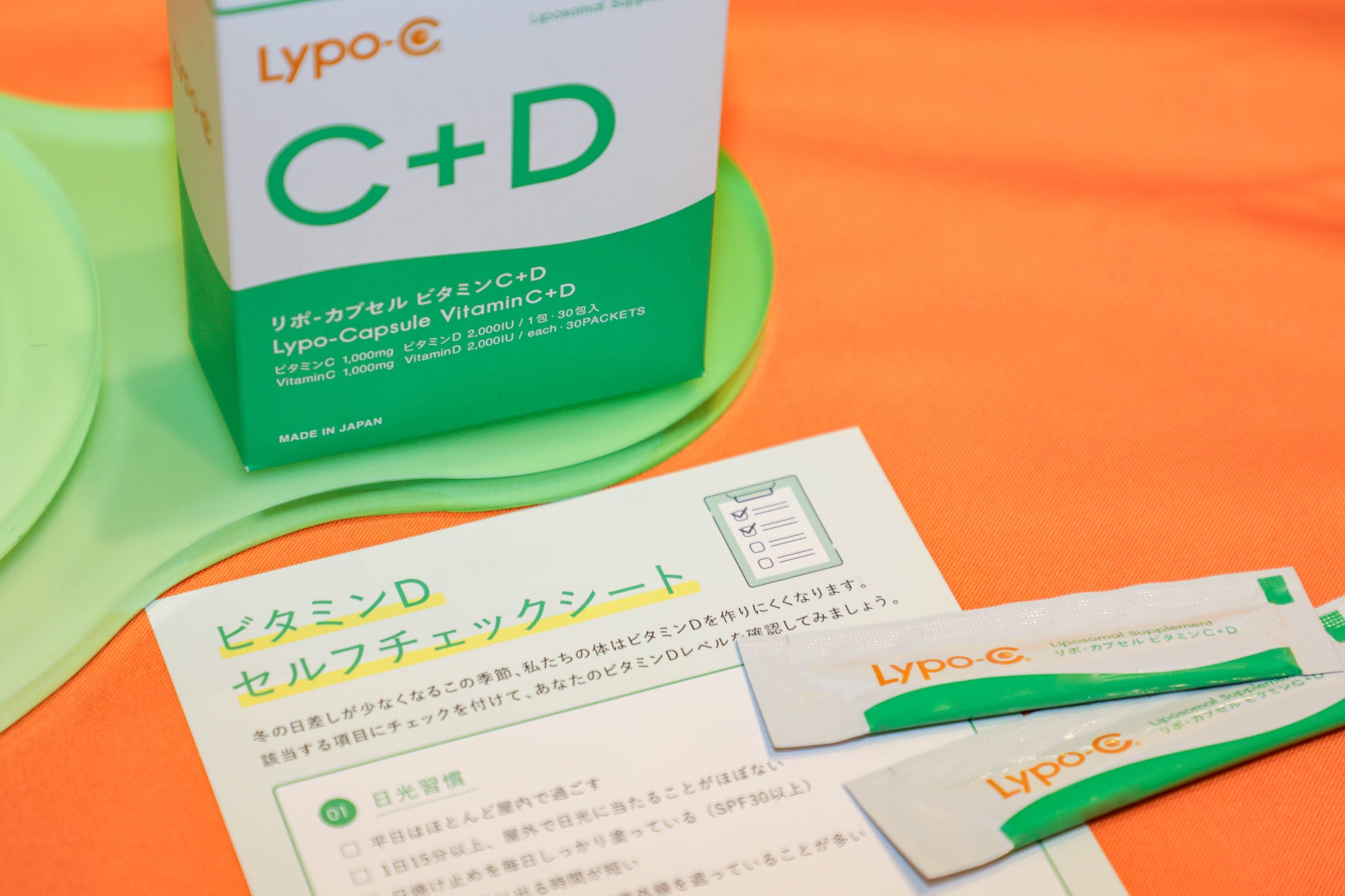 また、今回初となる「ビタミンDセルフチェックシート」をご用意。ご自身のビタミンDレベルをセルフチェックしながら、Lypo-C Vitamin C+Dの試飲も体験できます。