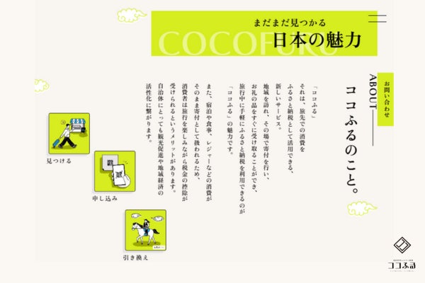 株式会社ユニヴァ・ペイキャスト(東京都港区、代表取締役:中尾 周平)は、旅をしたいまち、旅に訪れた場所で使える現地消費型ふるさと納税サービス「ココふる」のウェブサイトを全面リニューアル!より見やすく、自治体へココふるの魅力を情報発信、またふるさと納税データを一元化で見える化できる3システム「Furusato360」「ふるさと納税do」「LedgHOME」と連携が可能になりました。