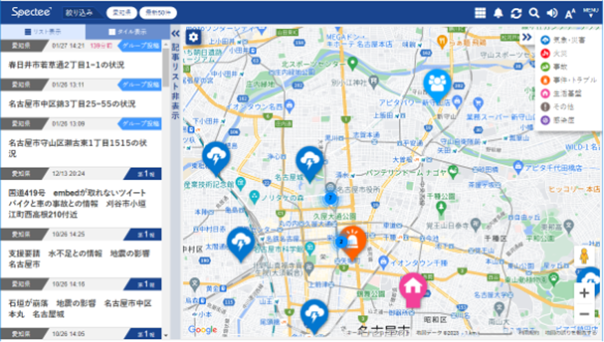 防災テックベンチャーの株式会社Spectee(本社:東京都千代⽥区、代表取締役 村上建治郎 以下、「スペクティ」)とNTTビジネスソリューションズ株式会社(本社:大阪府大阪市、代表取締役社長 上原一郎 以下、「NTTビジネスソリューションズ」)は、2023年2月6日名古屋市において、災害発生時の迅速でリアルタイムな情報収集・共有の実現と、その活用によるDX化の効果測定を目的に、NTTビジネスソリューションズが提供するビジネスチャット「elgana®(エルガナ)」と、スペクティが提供するAIリアルタイム危機管理サービス「Spectee Pro」を連携させた実証実験を実施しました。