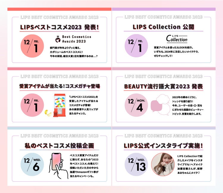 また、2023年12月1日に発表されたばかりの『LIPSベストコスメ2023』に関連した、さまざまなキャンペーンなどを実施中です。