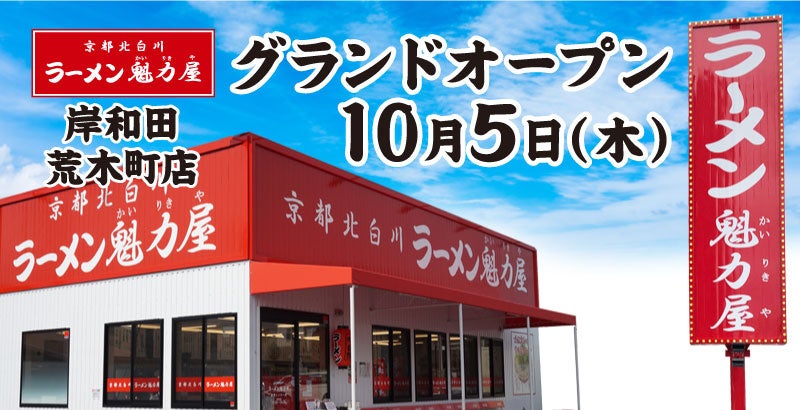 【全国131店舗目】京都北白川ラーメン魁力屋「岸和田荒木町店」(大阪府岸和田市)が2023年10月5日にグランドオープン!
