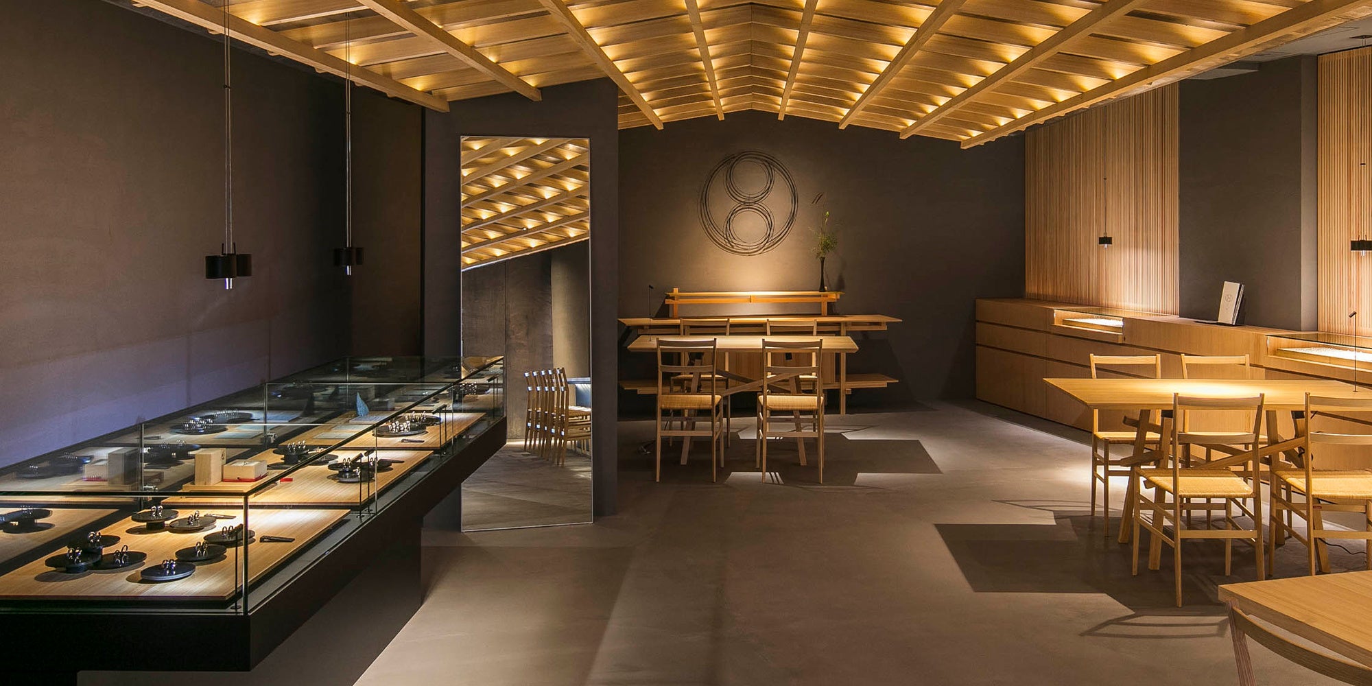 こだわりぬいたインテリアデザインを採用した、洗練されたプライベート空間で、和の心を感じながらリングをお選びいただけるTOMOE本店。