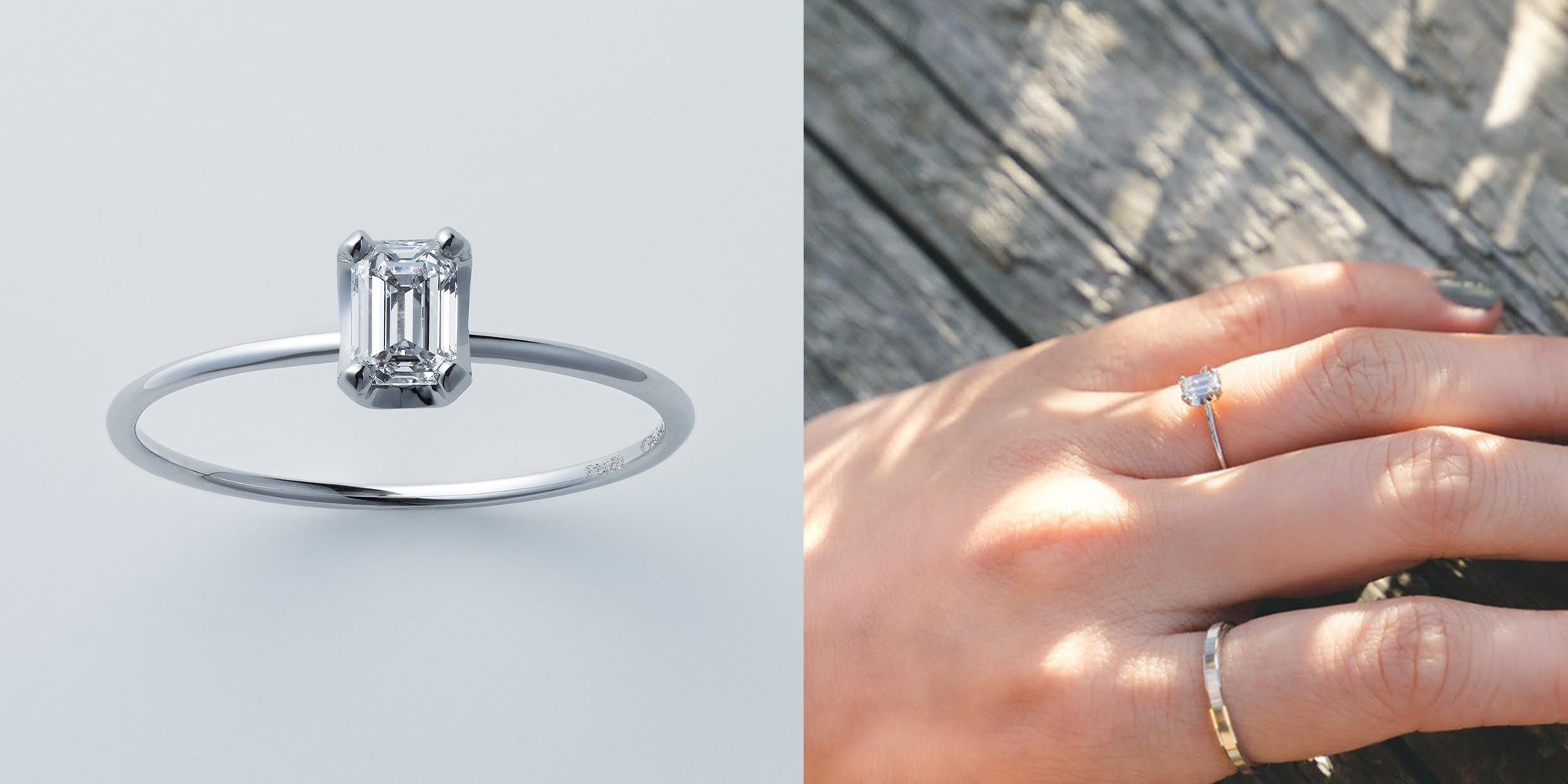 透き通るような輝きが知的で、大人の落ち着いた美しさのエメラルドカットダイヤモンド。