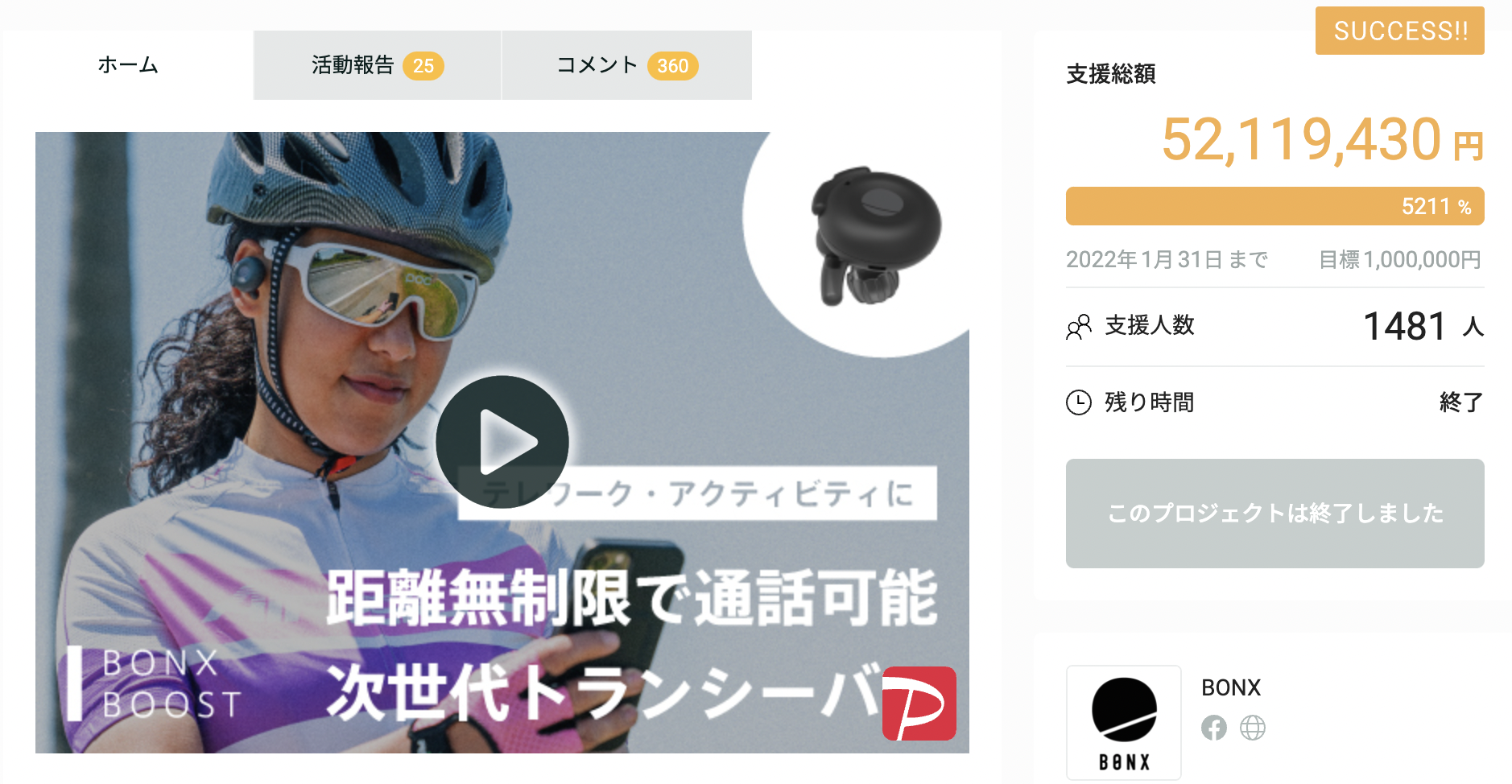 支援総額 5,200万円達成 BONX BOOST クラウドファンディング