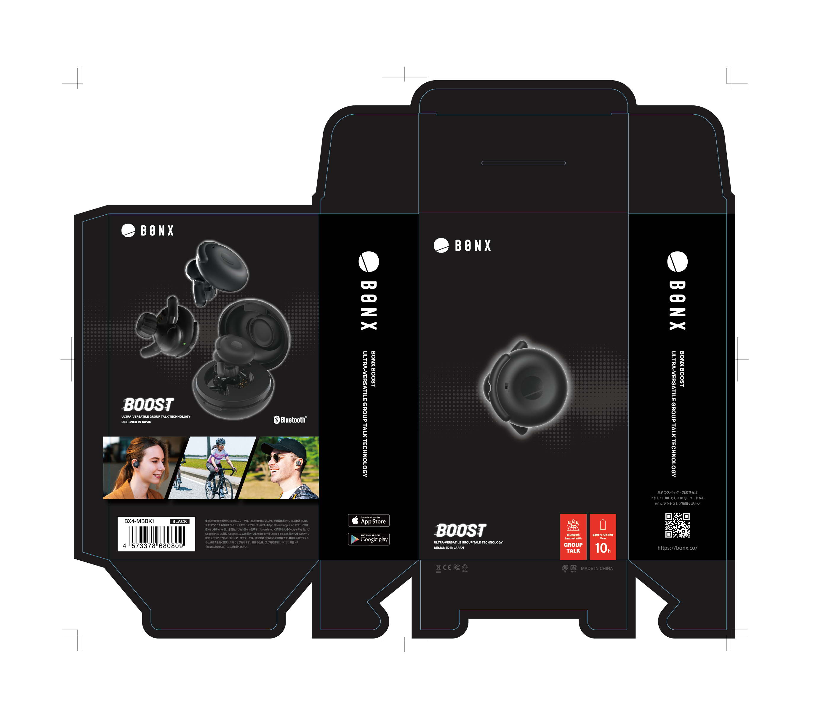 グループトークソリューション「BONX」「BONX WORK」と専用 Bluetooth イヤフォンである「BONX Grip」「BONX mini」「BONX BOOST」を通じて、ビジネスからプライベートシーンまで「声による常時接続」という新しいコミュニケーション体験を楽しめる。
