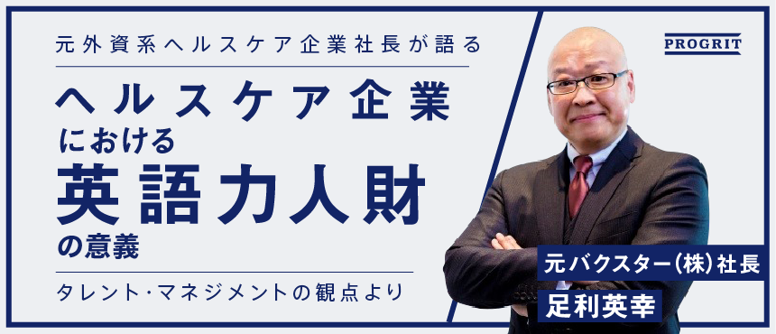 本セミナーでは、バクスター株式会社他、外資系ヘルスケア企業にて社長を歴任された足利様をお招きし、「ヘルスケア企業における”英語力人財”の意義」についてお話しいただきます。