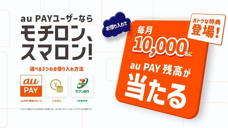 au PAY利用者限定、au PAY スマートローンの借り入れで、毎月合計10,000名に最大2,000円相当のau PAY 残高が当たる特典を提供開始