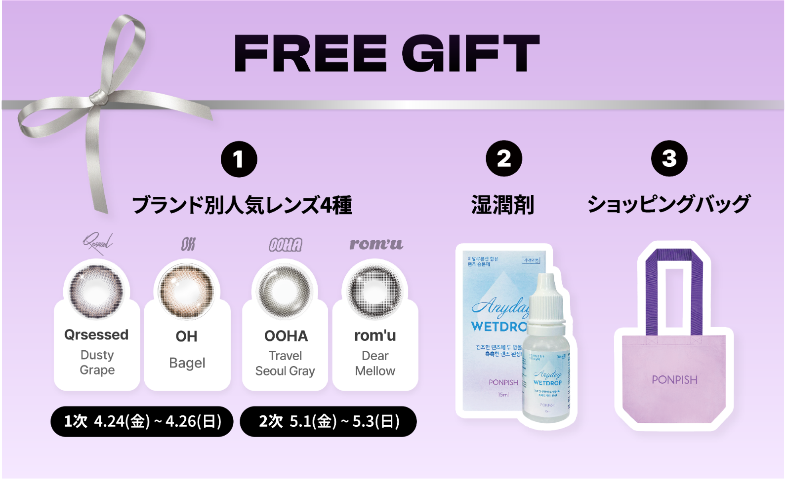 1.PONPISHカカオトークチャンネル友達追加で、1DAY2Pレンズプレゼント