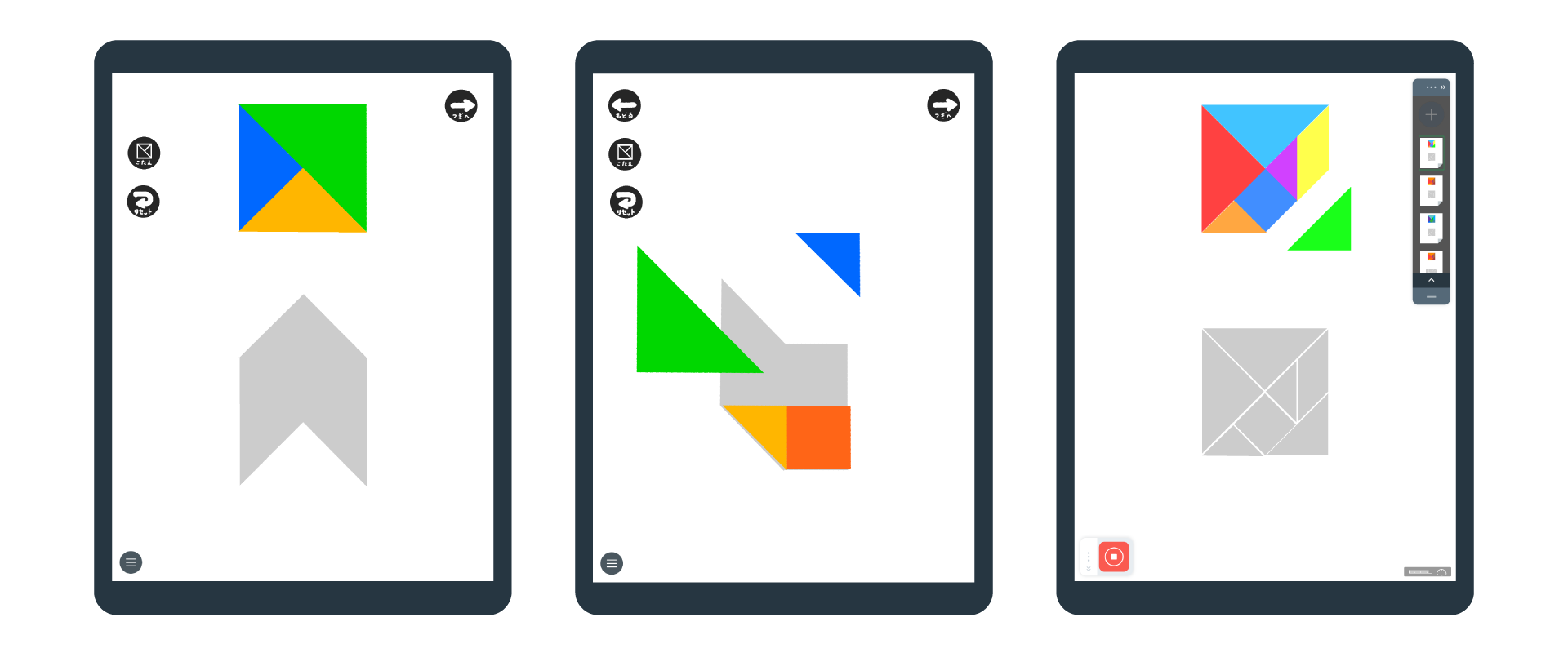 | タングラムのおもしろさは、やっぱり自由な発想が生まれること!たーくさんの組み合わせの中から自由に想像力を広げて新しい絵を生み出し、そこに名前をつけてみましょう。有限のパーツであっても、まるで無数のように思っている以上にたくさんの自由な組み合わせが生まれてきて、一人一人の個性もはじける世界の面白さは、格別です。世界中でタングラム的な遊びが古代から生まれてきました。どんなパーツだと面白くなるか、新しいオリジナルタングラムを生み出し、何通りのパターンが作れるか考えてみるのも素敵ですね。 |