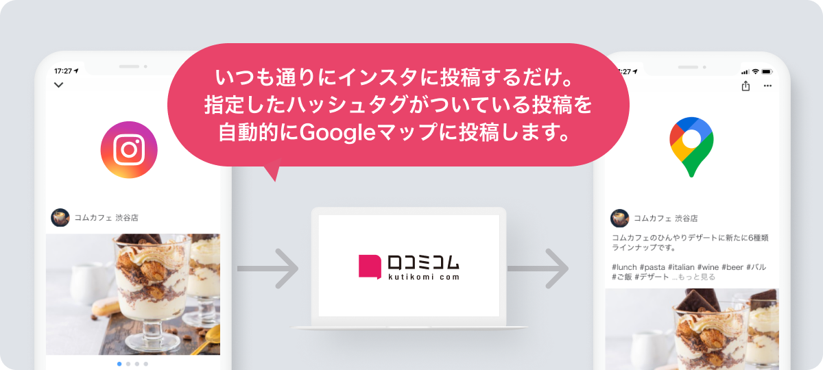 InstagramもGoogleマップも同時に投稿!口コミコムでWeb集客をもっと簡単に