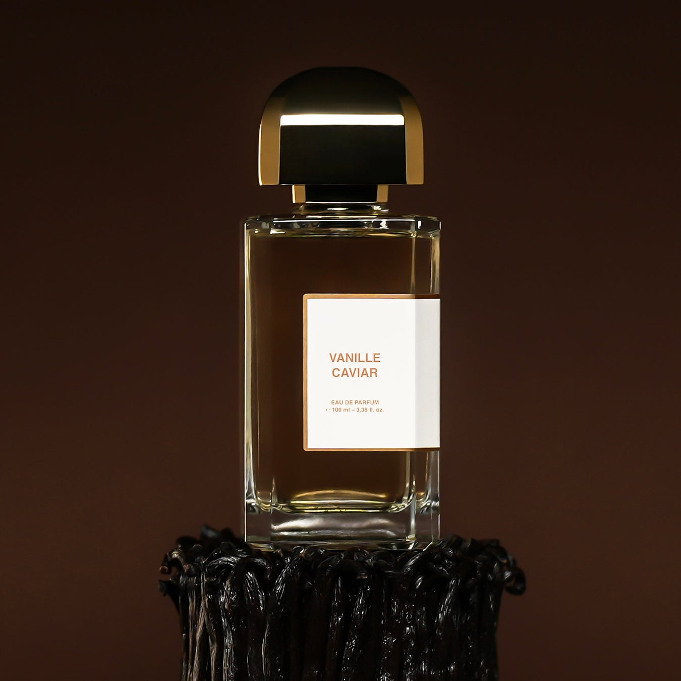 黒く艶めくバニラの鞘の中で密かに育まれた、漆黒のキャビア。とろりと滴る甘美は、鉱物の冷たさとレザーの渋みと溶け合い、静かに心に火を灯す。影のように深く、光のようにまばゆい、濃密で芳醇な香りの芸術。