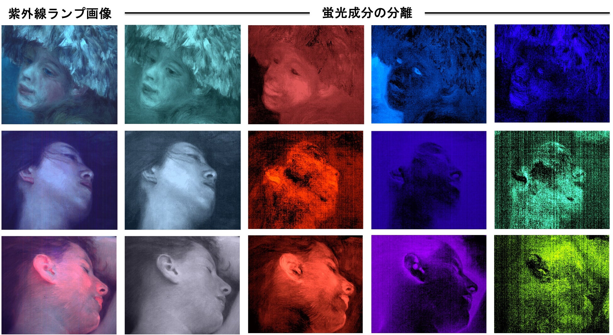 本調査は、対象物の成分に関する情報を非破壊・非接触で得られるハイパースペクトル・カメラと国立情報学研究所が有する蛍光スペクトルをデジタル上で分離する技術が用いられ、フジタは蛍光発光する顔料の性質を把握し、肌質感の再現のために意図的に異なる顔料を使い分けていた可能性が高いと結論付けました。