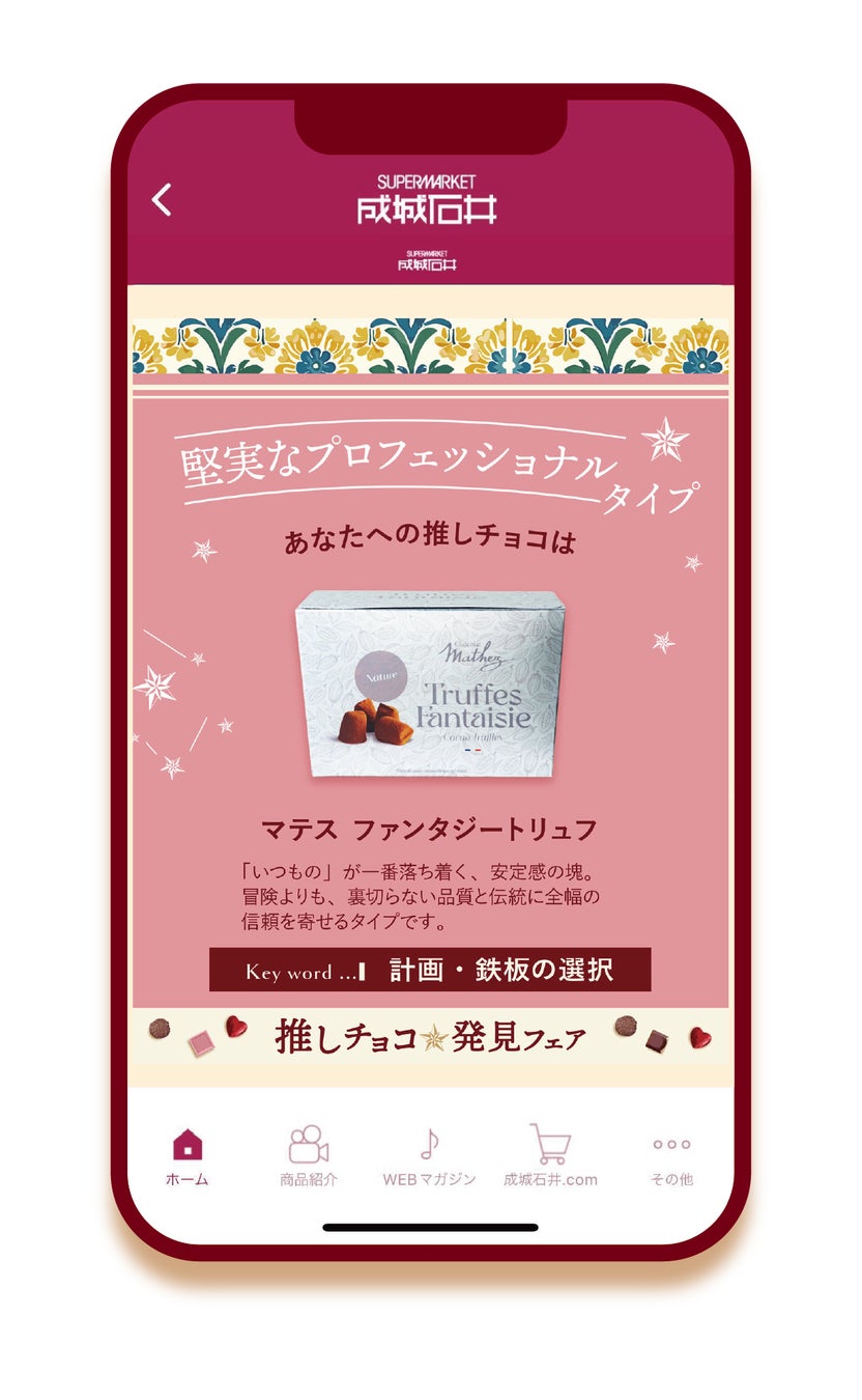 ・フェア期間中、公式アプリでは診断コンテンツ「推しチョコカルテ」を展開するほか、