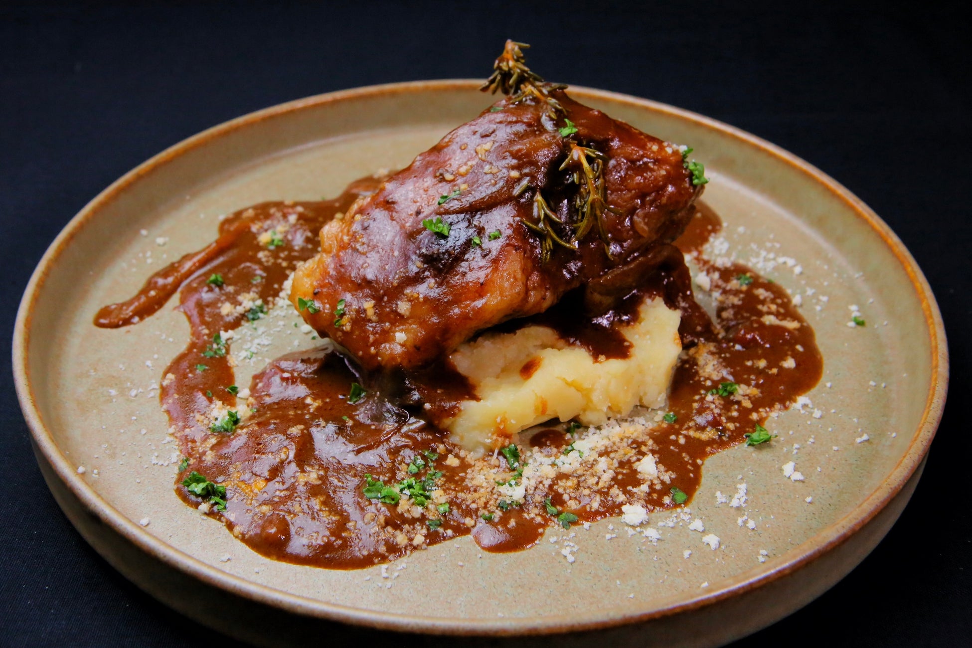 黒毛和牛を、デミグラスソースで柔らかくなるまで火を通し、仕上げに赤ワインとクーベルチュール(カカオ分72%)を加えて煮込みました。口の中でほどけるような柔らかさが特長のラグーです。口に入れた瞬間に鼻から抜けるカカオの豊かな香りと、赤ワインやクーベルチュールとデミグラスソースが複雑に絡み合う奥行きのある味わいをお楽しみいただけます。