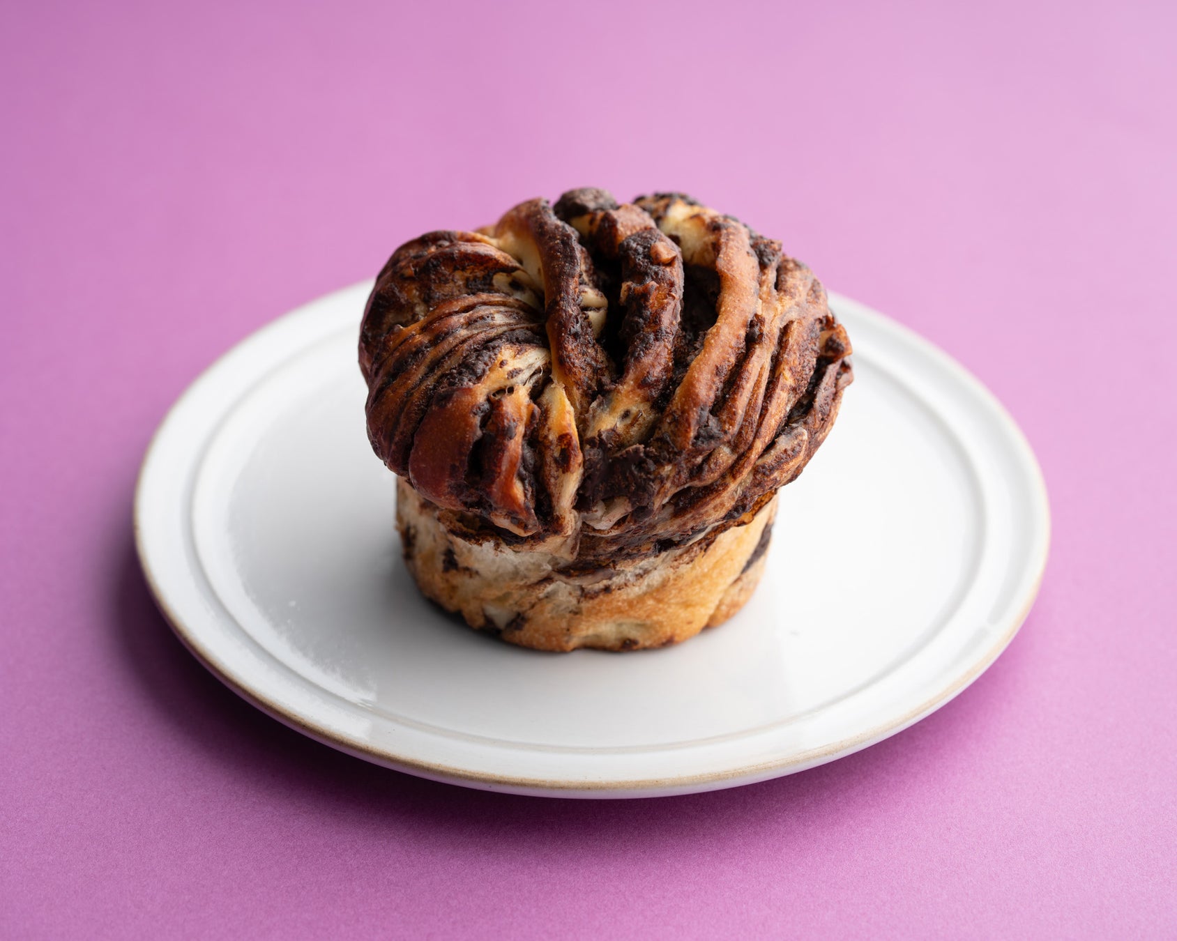 バブカとは、東ヨーロッパ発祥の甘い菓子パンで、卵とバターを使ったリッチな生地に、フィリングを練り込んで編み込んだ、渦巻き状の断面が特長的なパンです。本商品は、自家製チョコフィリングに、砕いたカカオ分58%のクーベルチュールチョコレートとカシューナッツを巻き込んで焼き上げました。ひと口ごとに濃厚なチョコのコクが口の中に広がり、奥行きのあるチョコレートの味わいをご堪能いただけます。