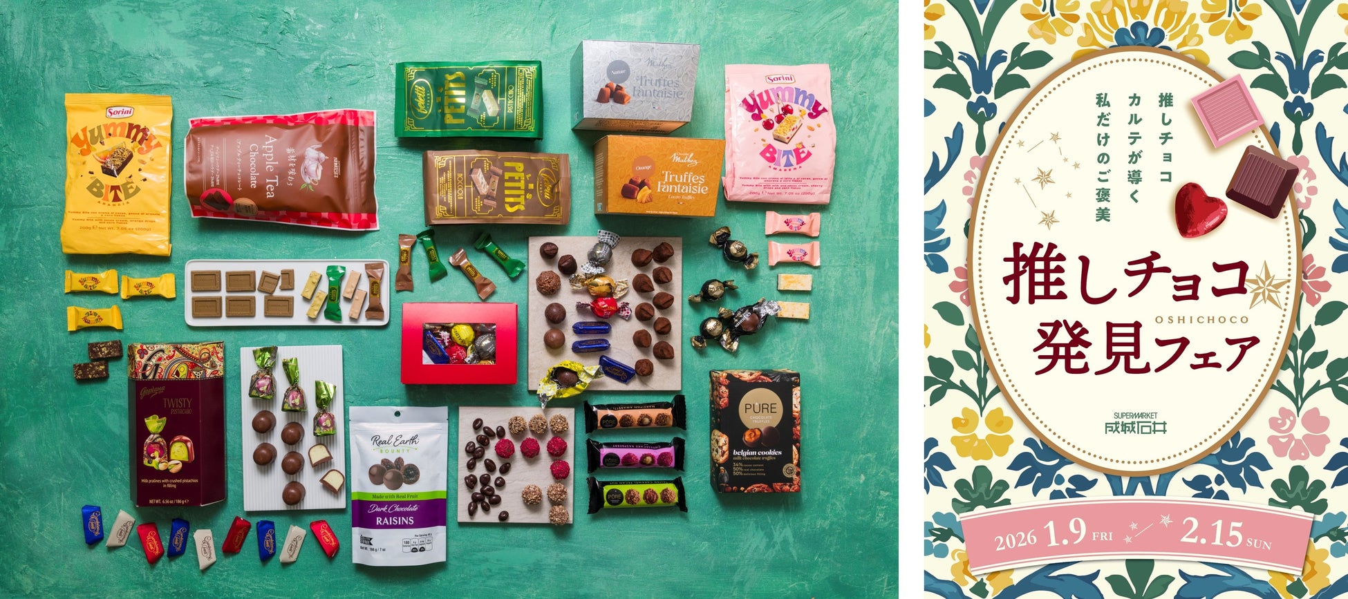 株式会社成城石井(本社事務所:神奈川県横浜市西区みなとみらい、代表取締役社長:後藤勝基)は、2026年1月9日(金)から2月15日(日)まで、成城石井226店舗全店にて「成城石井 推しチョコ★発見フェア〜推しチョコカルテが導く、私だけのご褒美〜」を開催いたします。