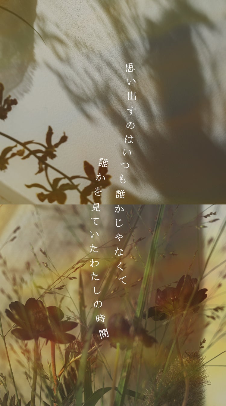 秋の気配を感じるノスタルジックな空気とアンニュイさが漂う背景を共有し、世界観の奥⾏きを演出。