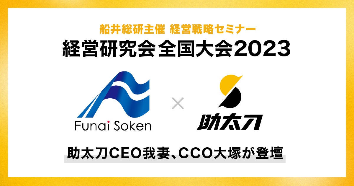 船井総研主催の「経営戦略セミナー 経営研究会全国大会2023」に助太刀CEO我妻、CCO大塚が登壇しました